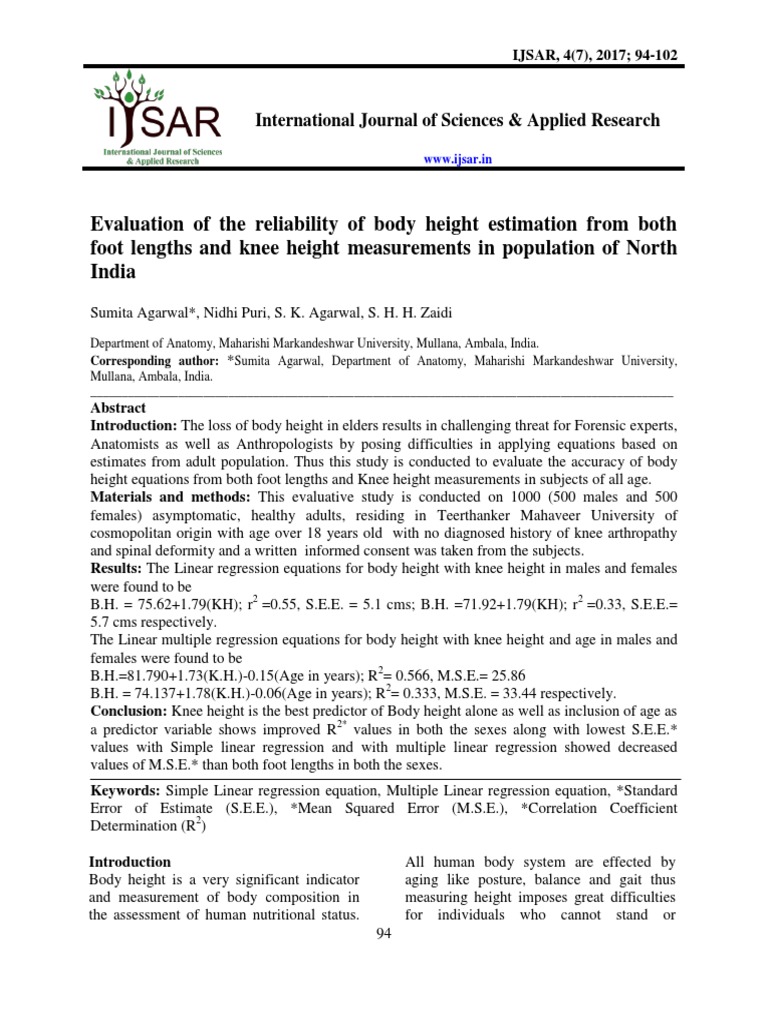 Pdf Application Of Linear Body Measurements For Live Body